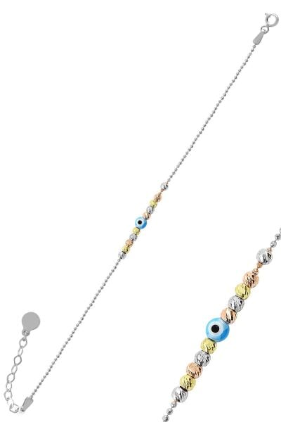 Gümüş altın yaldızlı, rodaj ve rose renkli nazarlı dorissa dorica bileklik SGTL11318RODAJ