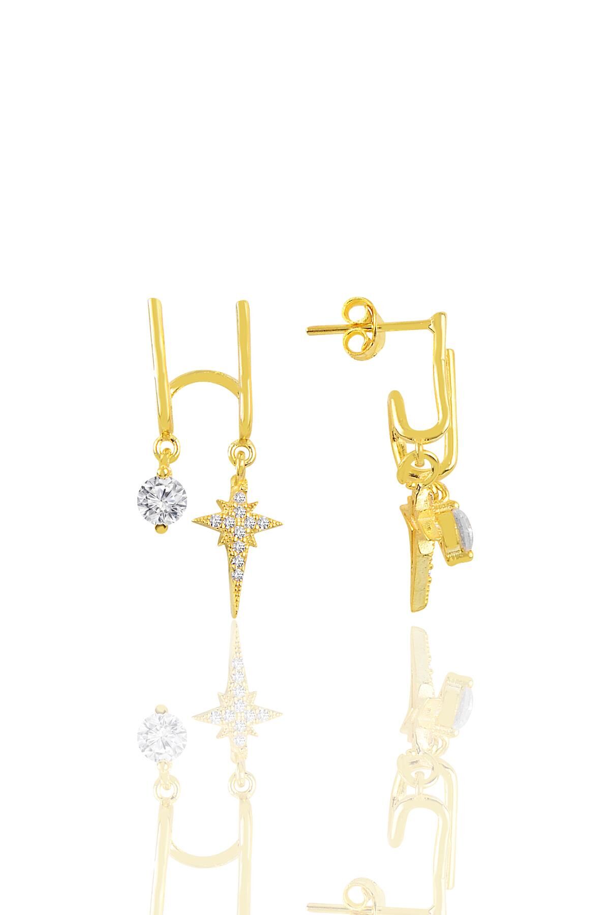 Gümüş altın yaldızlı zirkon taşlı çift görünümlü gümüş kutup yıldızı kupe SGTL10697GOLD