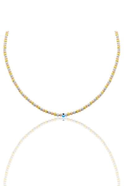 925 Ayar gümüş rose, altın ve rodyumlu nazarlı dorica kolye… Uzunluk:40+5 cm
