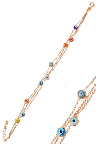 925 Ayar gümüş rose üç zincirli renkli cam göz nazar bileklik. Nazar Boyut:4.5 mm Uzunluk:16+3 cm uzatmalı