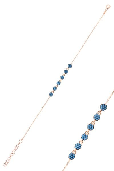 925 Ayar gümüş rose turkuaz taşlı çiçek bileklik. Boyut kalınlık:4,22mm Uzunluk:17+3 c m