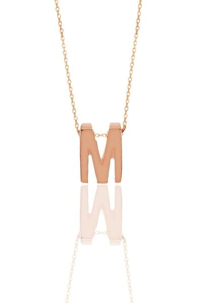 925 ayar gümüş rose üç boyutlu minimal M harf kolye… Boyut: 6,3 mm Zincir Uzunluk: 44 cm